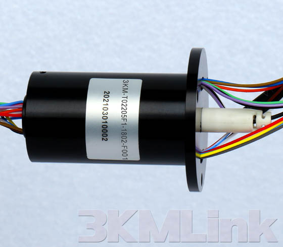 3KM T-series slip ring is designed with a through hole for shaft mounting, the through hole sizes are from 12.7mm to 124.6mm. it could be applied to transmit power, signals, RF, gas and fluid when the devices require 360° rotating.
